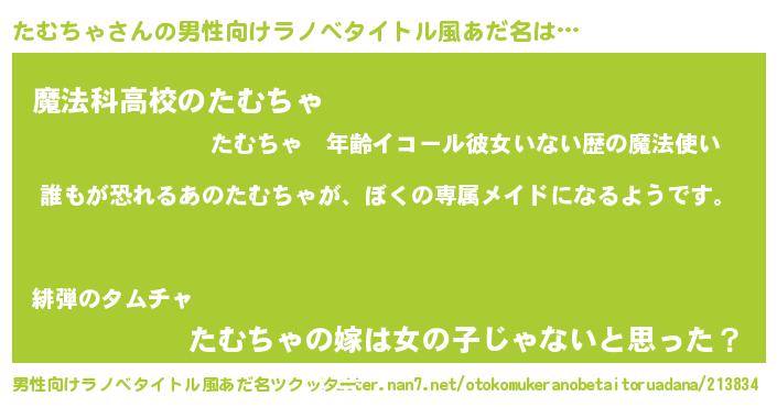 | 女子向けラノベタイトル風あだ名 | 『異世界でカフェたむちゃを開店しました。』 |