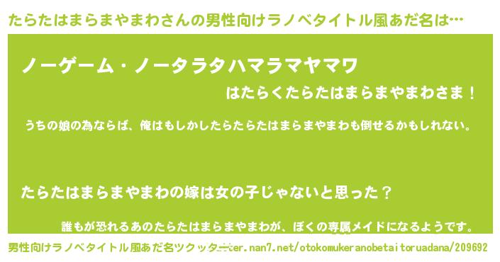 | 女子向けラノベタイトル風あだ名 | 『たらたはまらまやまわの婚約者』 |