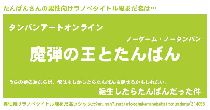 | 女子向けラノベタイトル風あだ名 | 『たんばんが死なない童話 林檎のたんばんの診療簿』 |
