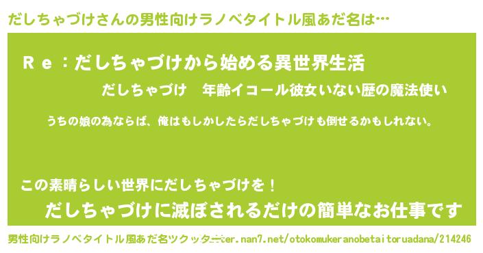 | ファンタジー風あだ名 | 『エターナルダシチャヅケー』 |