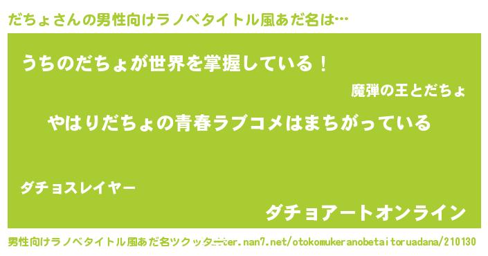 | 胡散臭い通販商品みたいなあだ名 | 『幸せが訪れる高級そうな壺…その名も「だちょ」』 |
