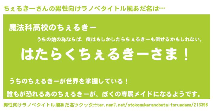 | 胡散臭い通販商品みたいなあだ名 | 『テレビで話題のアガリクス…その名も「ちぇるきー」』 |