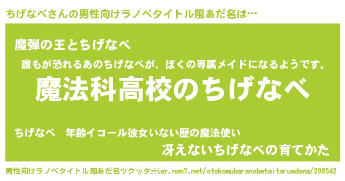 | 女子向けラノベタイトル風あだ名 | 『ちげなべなんてお断りですっ。』 |