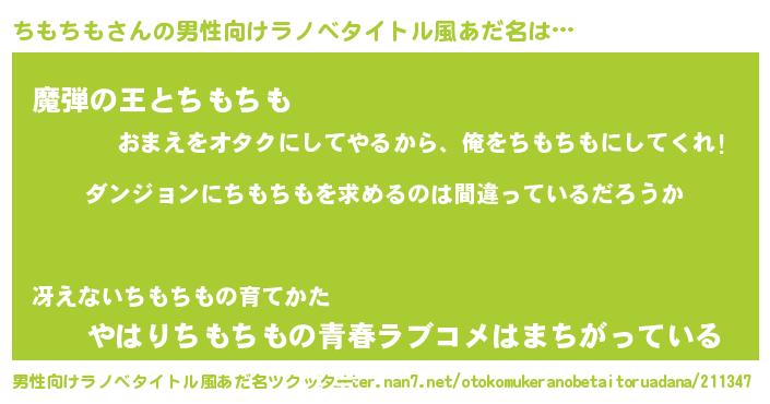 | 女子向けラノベタイトル風あだ名 | 『ちもちもの卵を拾いまして』 |
