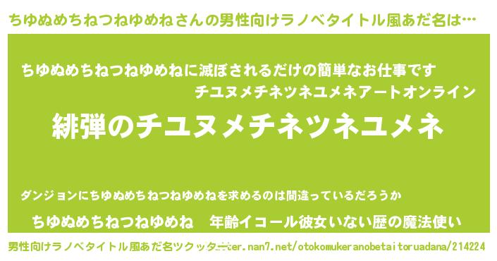 | 胡散臭い通販商品みたいなあだ名 | 『必ず成功する霊験あらたかなお札…その名も「ちゆぬめちねつねゆめね」』 |