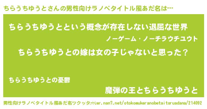 | 女子向けラノベタイトル風あだ名 | 『ちらうちゆうと様がみてる』 |
