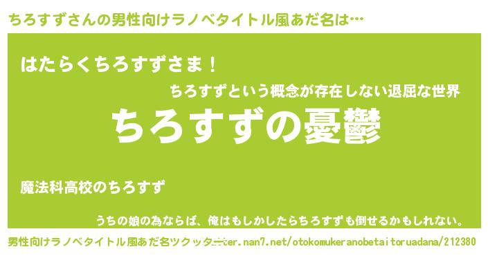 | ヘコむあだ名 | 『ちろにゅー』『つくし』『ちろお』 |