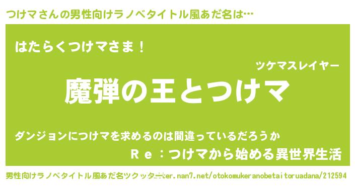 | 女子向けラノベタイトル風あだ名 | 『乙女ゲームの破滅フラグしかない悪役つけマに転生してしまった…』 |
