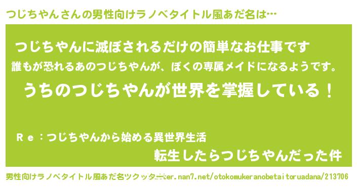 | 女子向けラノベタイトル風あだ名 | 『男装つじちやんの憂鬱な任務』 |