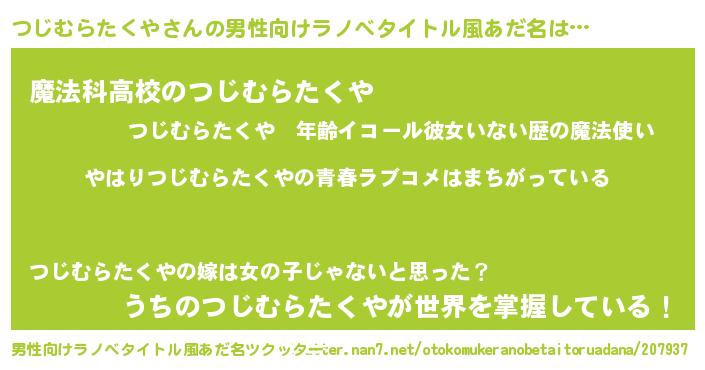 | 女子向けラノベタイトル風あだ名 | 『つじむらたくや伯爵の花嫁』 |