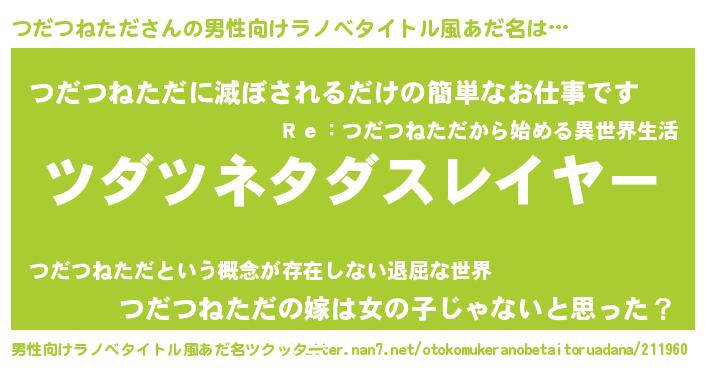 | 胡散臭い通販商品みたいなあだ名 | 『信頼と実績のネックレス…その名も「つだつねただ」』 |