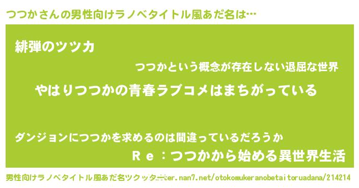 | 意味不明あだ名 | 『つつかフォーエバー』『自称つつか』 |