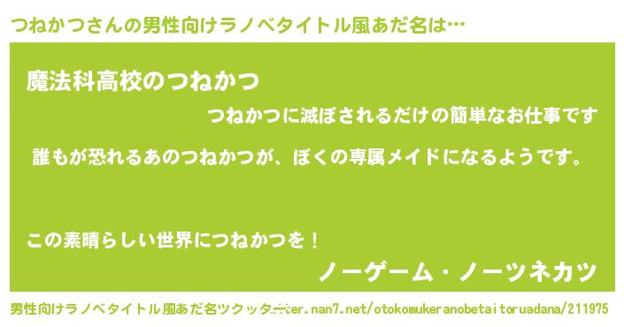 | 女子向けラノベタイトル風あだ名 | 『つねかつの契約王妃』 |