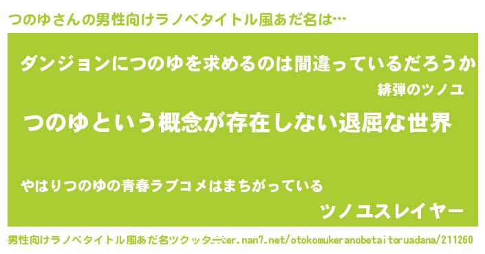 | 意味不明あだ名 | 『永久保存つのゆ』『めかぶ科つのゆ属』 |