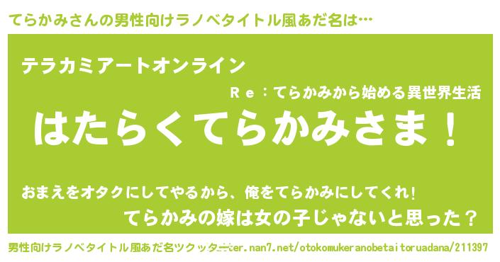 | 胡散臭い通販商品みたいなあだ名 | 『モテモテ間違いなし水晶球…その名も「てらかみ」』 |