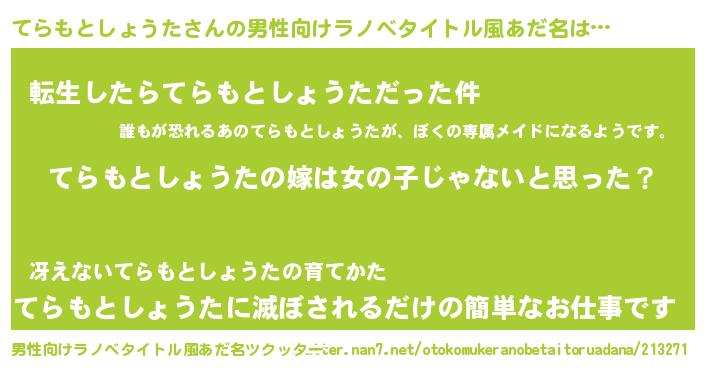 | 女子向けラノベタイトル風あだ名 | 『てらもとしょうた様がみてる』 |