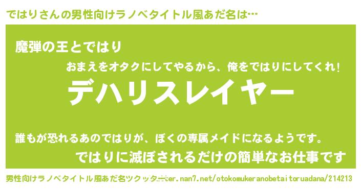 | ヘコむあだ名 | 『ではり(笑)』『ではふぇ~』 |