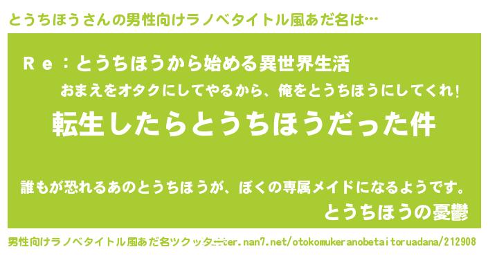 | 肩書あだ名 | 『とうちほう中佐』『とうちほう閣下』 |