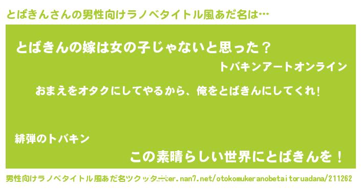 | 女子向けラノベタイトル風あだ名 | 『とばきん恋絵巻』『とばきん様がみてる』 |