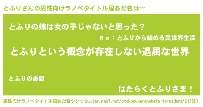 | 肩書あだ名 | 『とふり先生』『とふりリーダー』 |