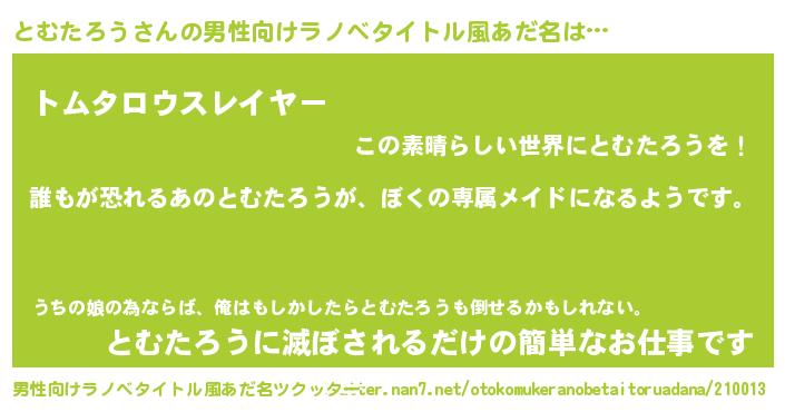 | 女子向けラノベタイトル風あだ名 | 『異世界でカフェとむたろうを開店しました。』 |