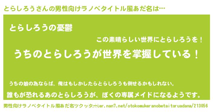 | ヘコむあだ名 | 『とらもー』『とらしろう(笑)』 |
