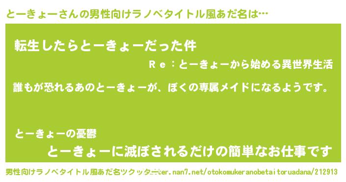 | 意味不明あだ名 | 『永久保存とーきょー』『自称とーきょー』 |