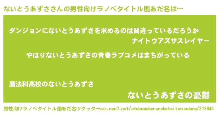 | 女子向けラノベタイトル風あだ名 | 『ないとうあずさ伯爵の花嫁』 |