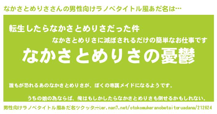 | 女子向けラノベタイトル風あだ名 | 『(仮)なかさとめりさのやんごとなき事情』 |