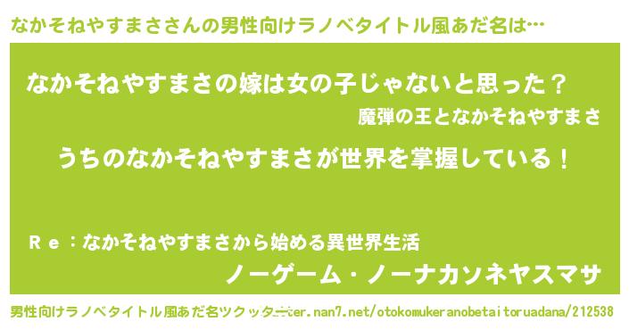 | 胡散臭い通販商品みたいなあだ名 | 『全米が絶賛したサプリメント…その名も「なかそねやすまさ」』 |