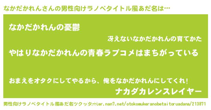 | ファンタジー風あだ名 | 『エターナルナカダカレンー』 |