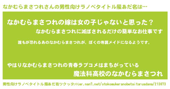 | 女子向けラノベタイトル風あだ名 | 『なかむらまさつれの契約王妃』 |