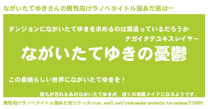 | 女子向けラノベタイトル風あだ名 | 『ながいたてゆき姫と円卓の騎士』 |