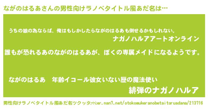 | 意味不明あだ名 | 『永久保存ながのはるあ』 |