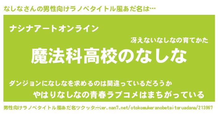 | 女子向けラノベタイトル風あだ名 | 『なしなアンティーク』 |