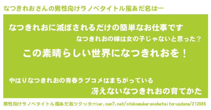 | 女子向けラノベタイトル風あだ名 | 『悪役なつきれおに転生したようですが、知った事ではありません』 |