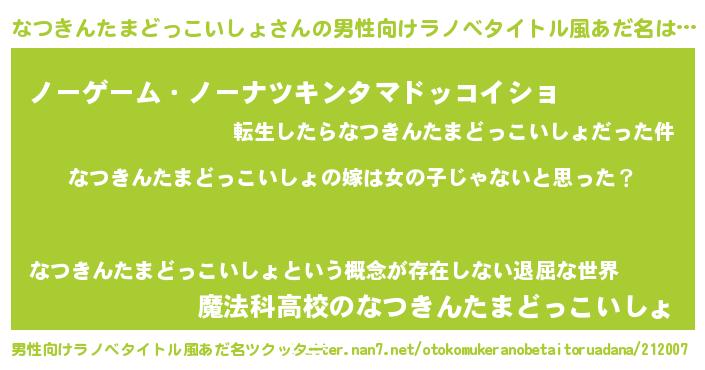 | 伝説のあだ名 | 『覚醒した遊び人なつきんたまどっこいしょ』 |