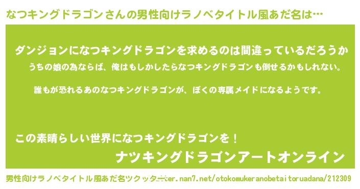 | 意味不明あだ名 | 『永久保存なつキングドラゴン』 |