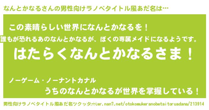 | 意味不明あだ名 | 『住所不定無職なんとかなる(68歳)』 |