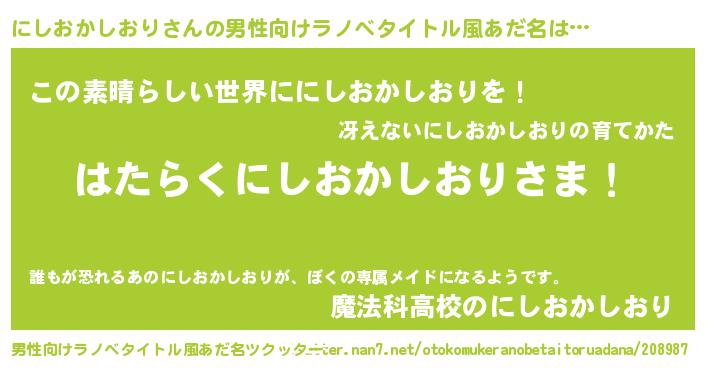 | 意味不明あだ名 | 『住所不定無職にしおかしおり(93歳)』 |