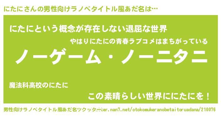 | 意味不明あだ名 | 『眠気覚ましガムにたに味』『自称にたに』 |