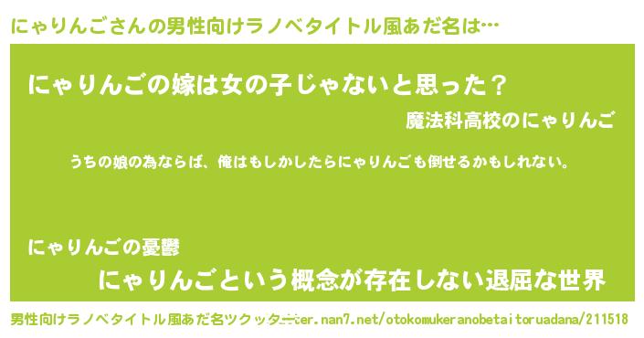 | 女子向けラノベタイトル風あだ名 | 『にゃりんごの婚約者』 |