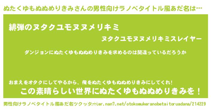 | 女子向けラノベタイトル風あだ名 | 『ぬたくゆもぬぬめりきみは平凡を望む』 |