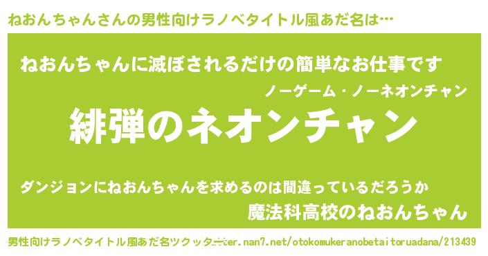 | 意味不明あだ名 | 『自称ねおんちゃん』 |