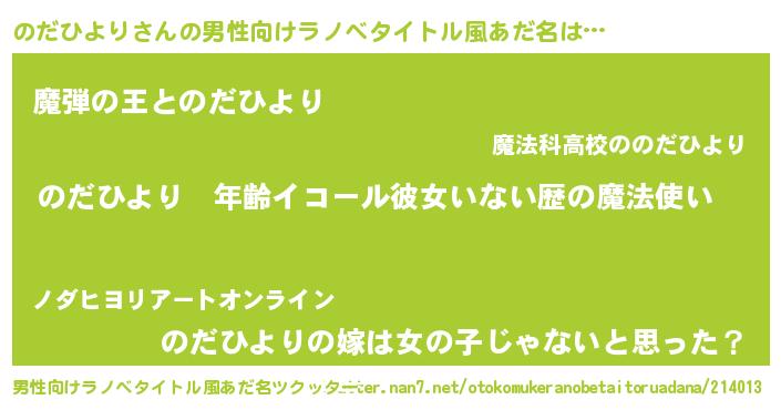 | 胡散臭い通販商品みたいなあだ名 | 『あなたにだけ特別に提供する100年もののヴィンテージワイン…その名も「のだひより」』 |