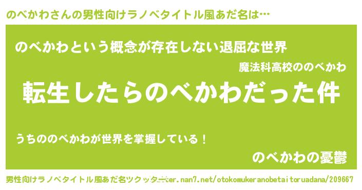 | 意味不明あだ名 | 『たけのこ科のべかわ属』『自称のべかわ』 |