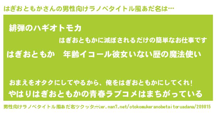 | 女子向けラノベタイトル風あだ名 | 『はぎおともかの玉の輿計画!』 |