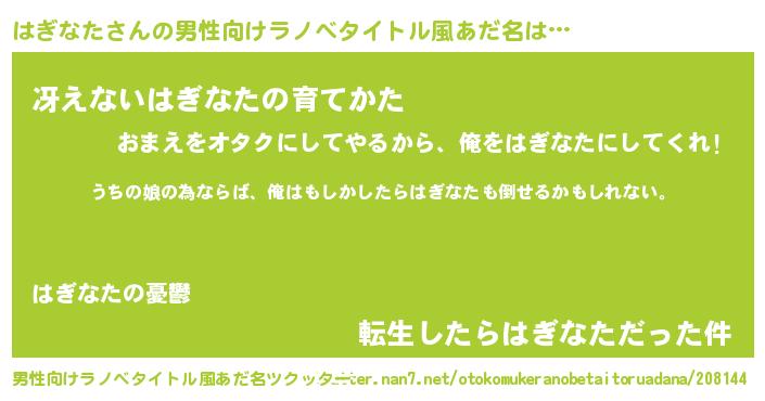 | 女子向けラノベタイトル風あだ名 | 『はぎなた伯爵の花嫁』 |