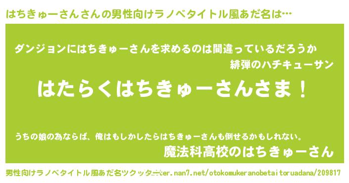 | 胡散臭い通販商品みたいなあだ名 | 『信頼と実績のペンダント…その名も「はちきゅーさん」』 |
