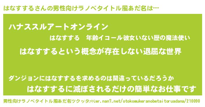 | 胡散臭い通販商品みたいなあだ名 | 『来世でも幸せになれる健康食品…その名も「はなすする」』 |